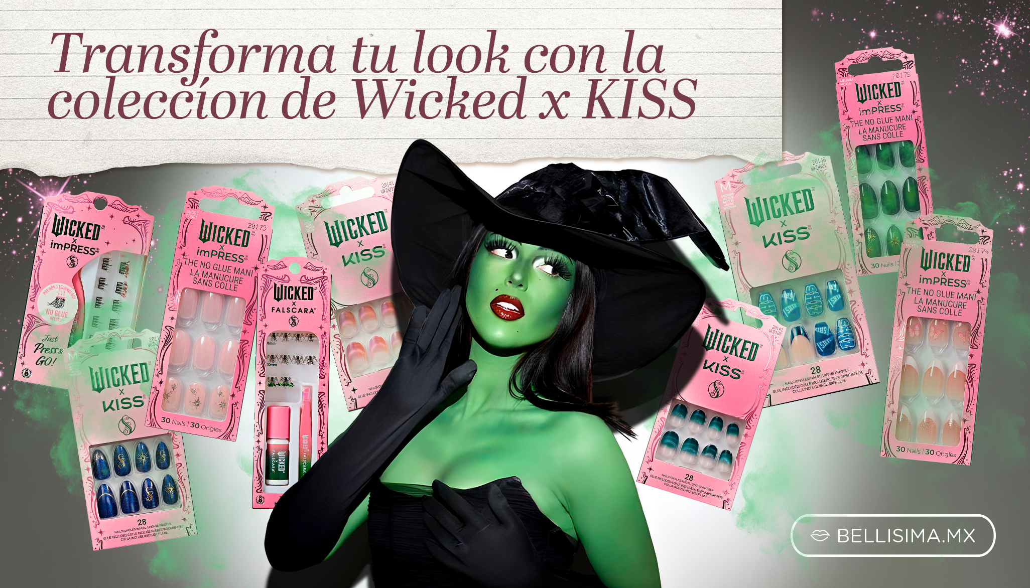 ¡Hola Bella, bienvenida a un mundo de magia y estilo! Si eres fan de Wicked o simplemente amas los looks que combinan creatividad y glamour, la colección Wicked x KISS tiene todo lo que necesitas para destacar. Uñas y pestañas postizas que no solo embellecen, sino que también cuentan una historia, permitiéndote expresar tu estilo con un toque de hechicería.